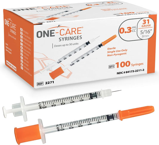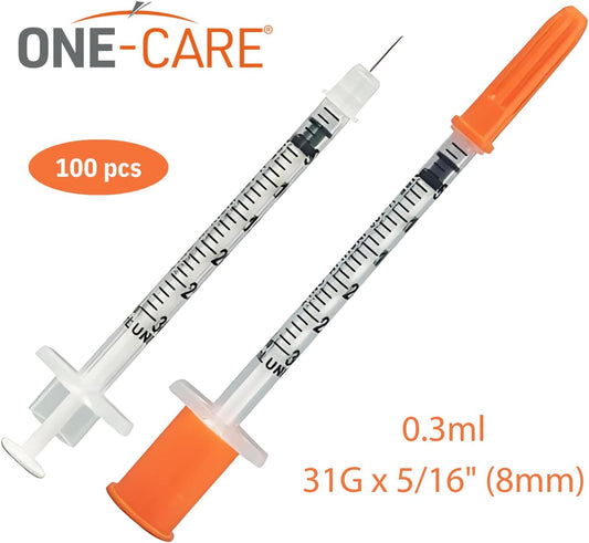 (Box) ONE-CARE Insulin Syringes 0.3cc (8mm), 100/bx, 20bx/cs