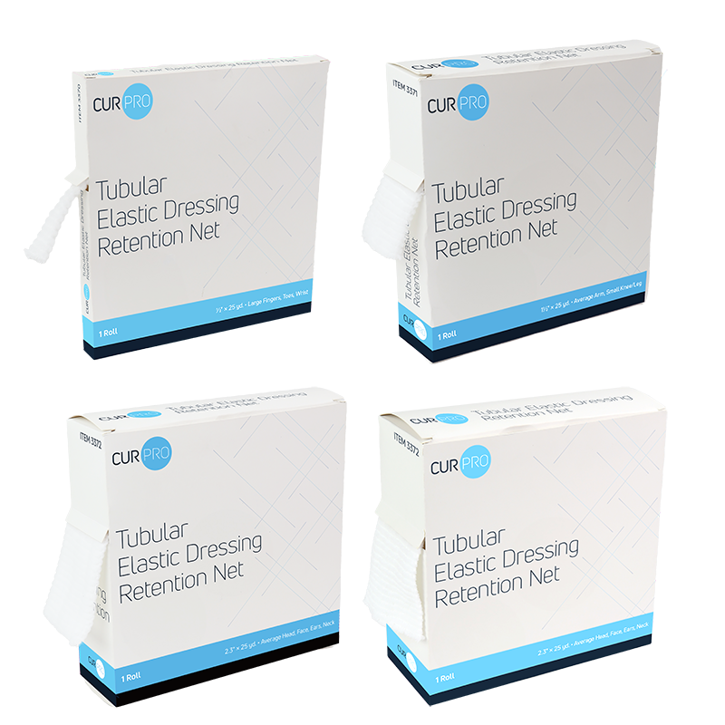 CurPro Tubular Elastic Bandages are versatile secondary dressings designed to secure medical devices and dressings in place without the need for adhesives. Constructed from soft, elastic material, these bandages provide a gentle, secure fit while conforming to the body’s natural contours for optimal comfort. The breathable fabric allows for optimal airflow, helping to maintain a comfortable environment for the skin, even during extended wear. Ideal for use on hard-to-bandage areas such as knees, elbows, and shoulders, these bandages are designed for fragile, sensitive, or at-risk skin. The tape-free design minimizes the risk of irritation and skin stripping during dressing changes, making them suitable for geriatric, pediatric, and allergy-prone patients. Easy to cut to the desired length, the bandages are reusable for single-patient applications.